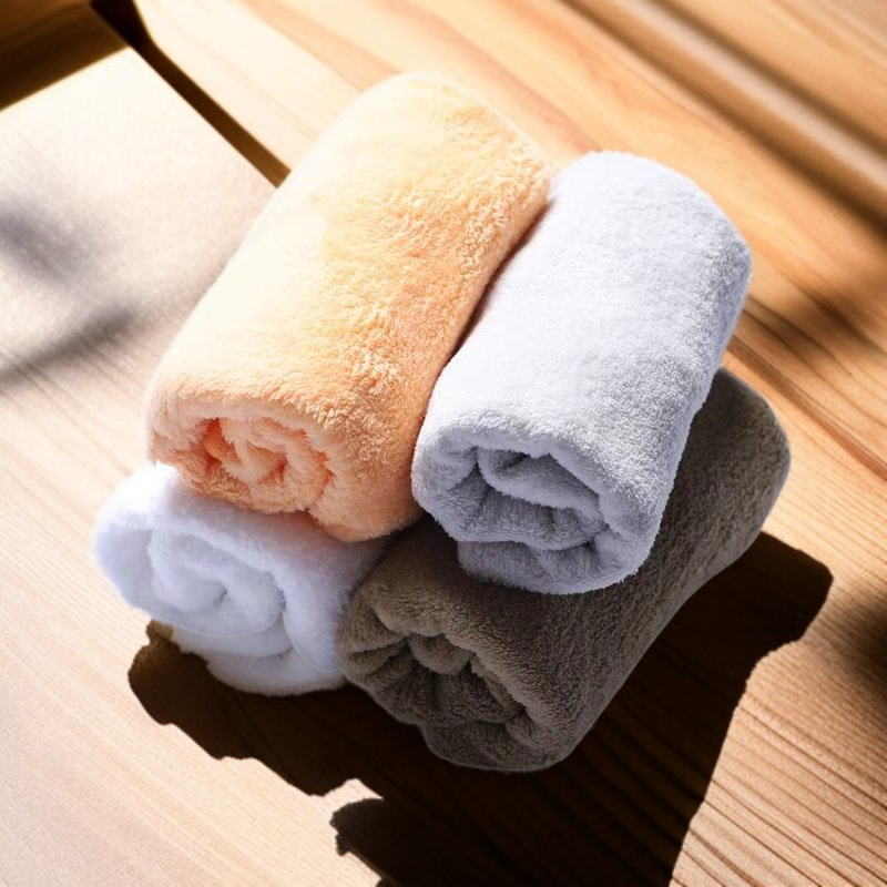 색상: 회색 수건, 분홍색 수건, 진녹색 수건, 오렌지색 수건